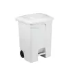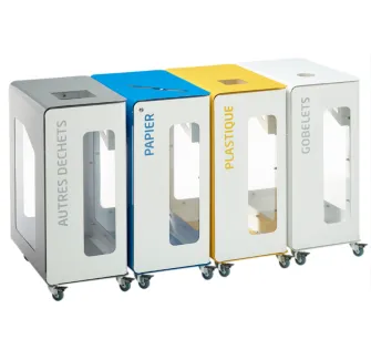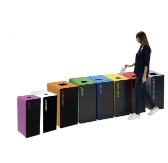 La poubelle de tri intérieur, d'une contenance de 70 litres, est fabriquée en polypropylène. Elle est munie d'une barre d'actionnement du couvercle en plastique et de roues en plastique rigide avec bande roulante en caoutchouc, pour une plus grande mobilité. Conforme à la norme HACCP, elle est disponible en 5 coloris au choix pour faciliter le tri sélectif.