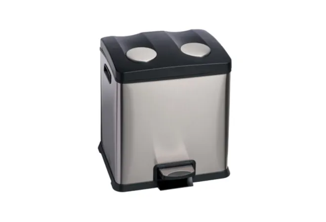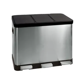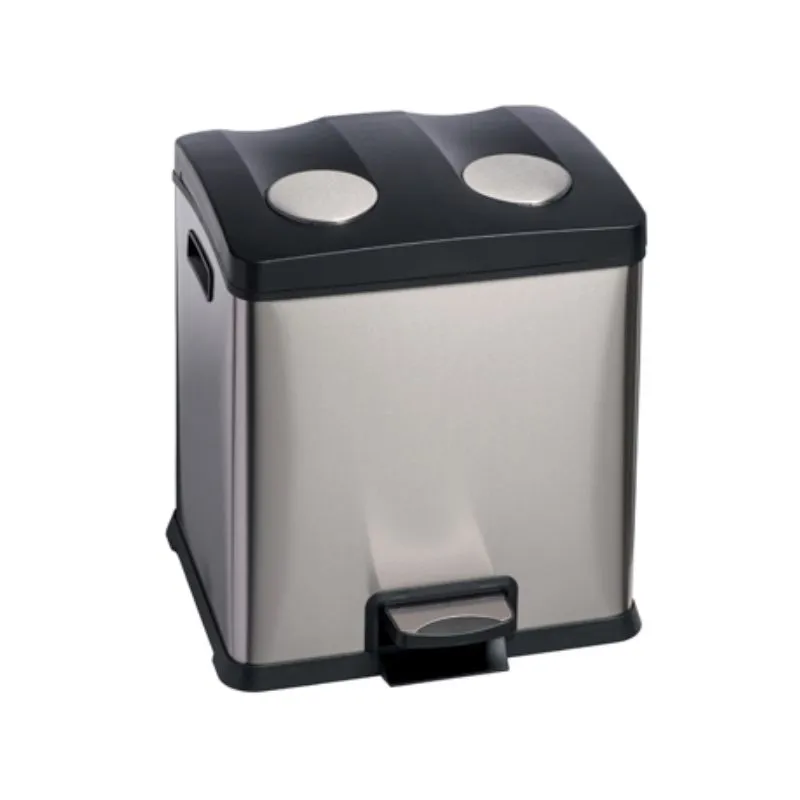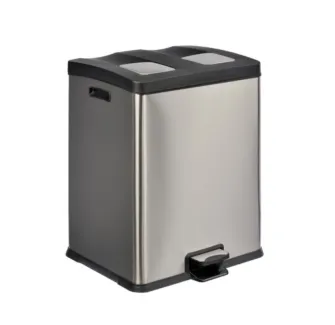 Cette poubelle de tri sélectif à pédale en acier inoxydable traité anti trace dispose de deux seaux en polypropylène facilitant le nettoyage. Son système de fermeture amortie, ses poignées intégrées et son socle en caoutchouc en font une poubelle de tri idéale pour les salles de pauses ou pour une utilisation en tant que corbeille de bureau tri sélectif.
