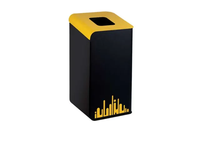 La corbeille de tri, d'une contenance de 80 litres, est équipée d'un support sac intégré, d'une ouverture par une porte supérieure et de 4 pieds réglables en hauteur. Son couvercle en acier poudré se décline en 7 coloris au choix pour encourager le tri des déchets dans toutes les collectivités.