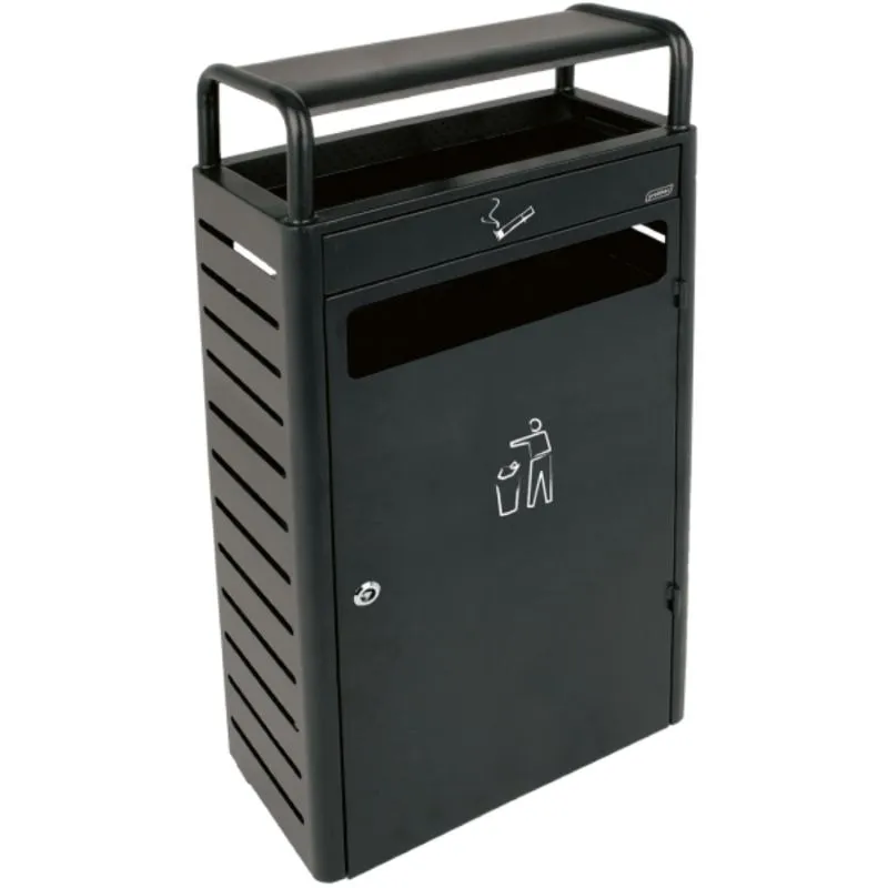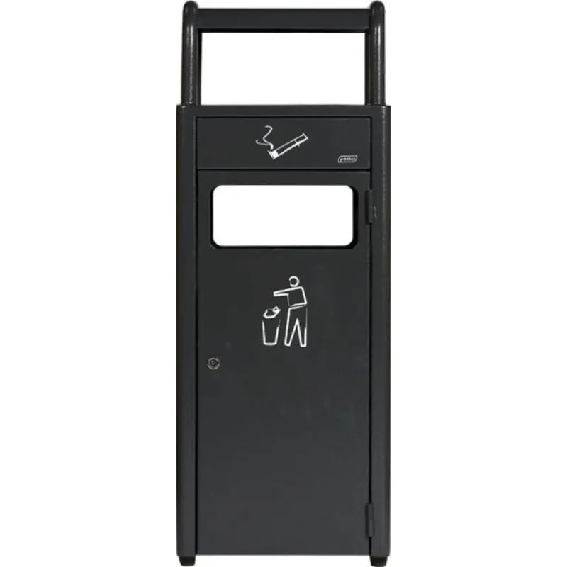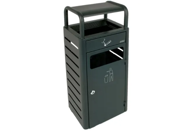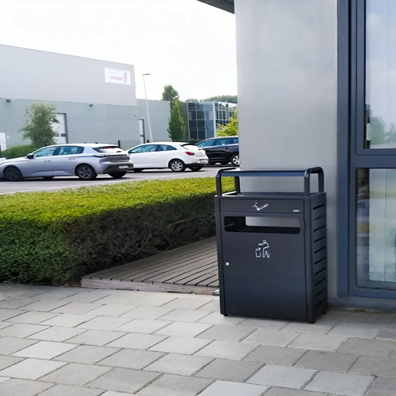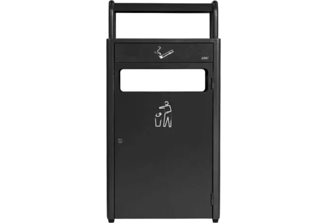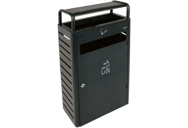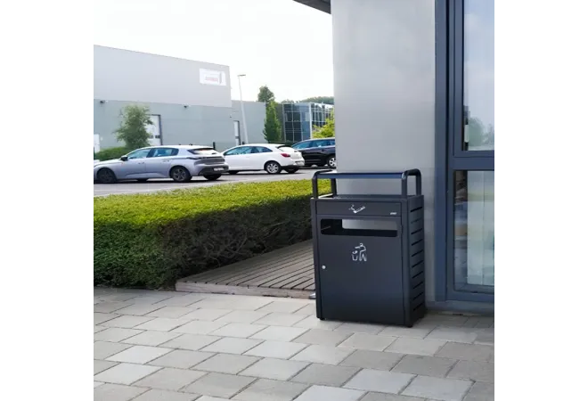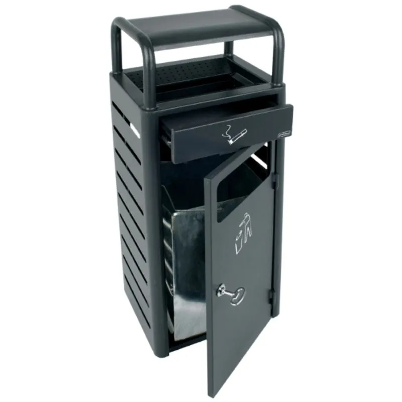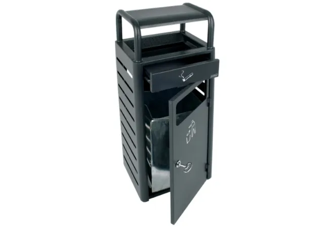 Le conteneur avec cendrier permet à la fois la collecte séparée des déchets et des cigarettes. Il est accessible des deux côtés. Muni d'un bac intérieur amovible pour un vidage simple et rapide. Disponible en 2 dimensions, il est idéal pour les zones à forte fréquentation.