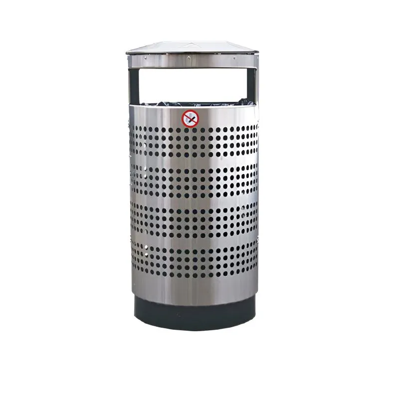 La corbeille extérieure fabriquée en inox. Elle sera parfaite pour équiper vos rues et jardins publics.