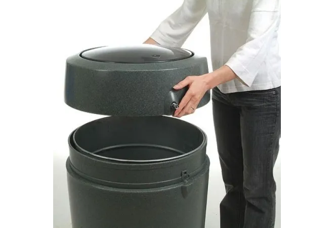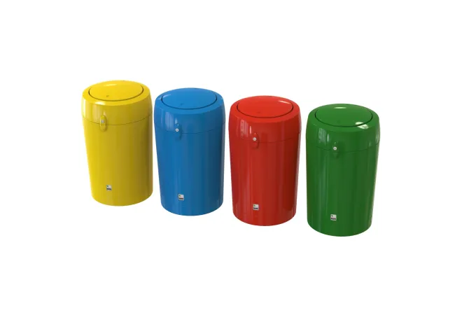 La corbeille ronde est conçue en polyéthylène de haute qualité, très résistant à la corrosion et aux intempéries extérieures. Cette poubelle en plastique est compact et design, avec 20 coloris au choix, elle trouvera sa place dans n'importe quel environnement.