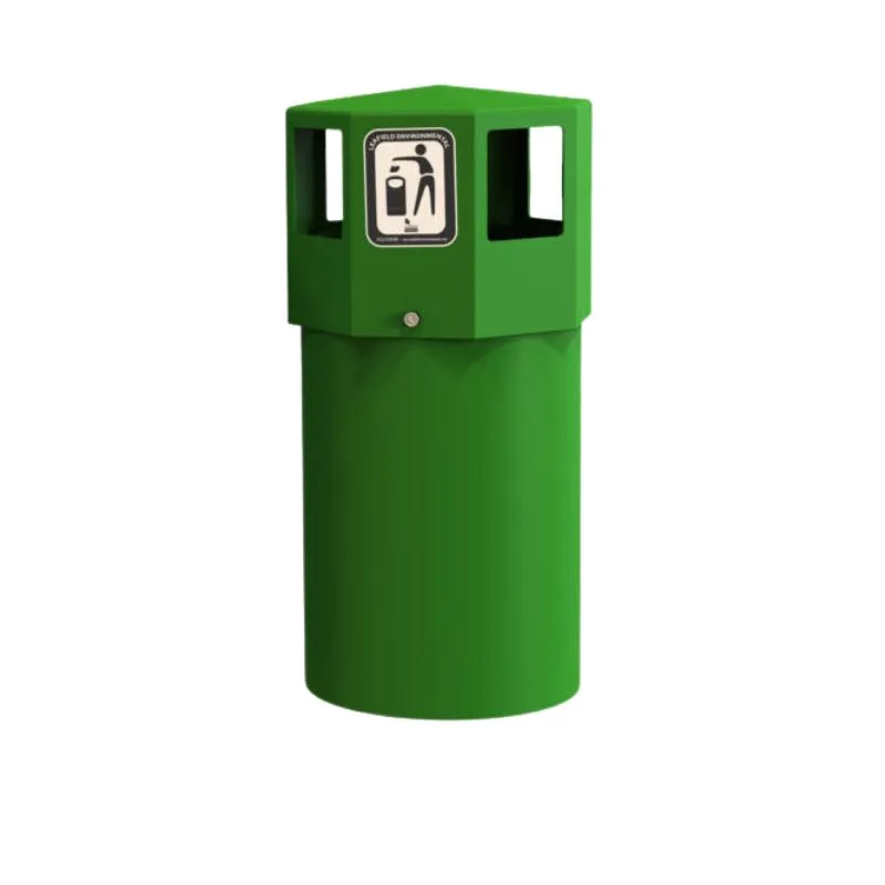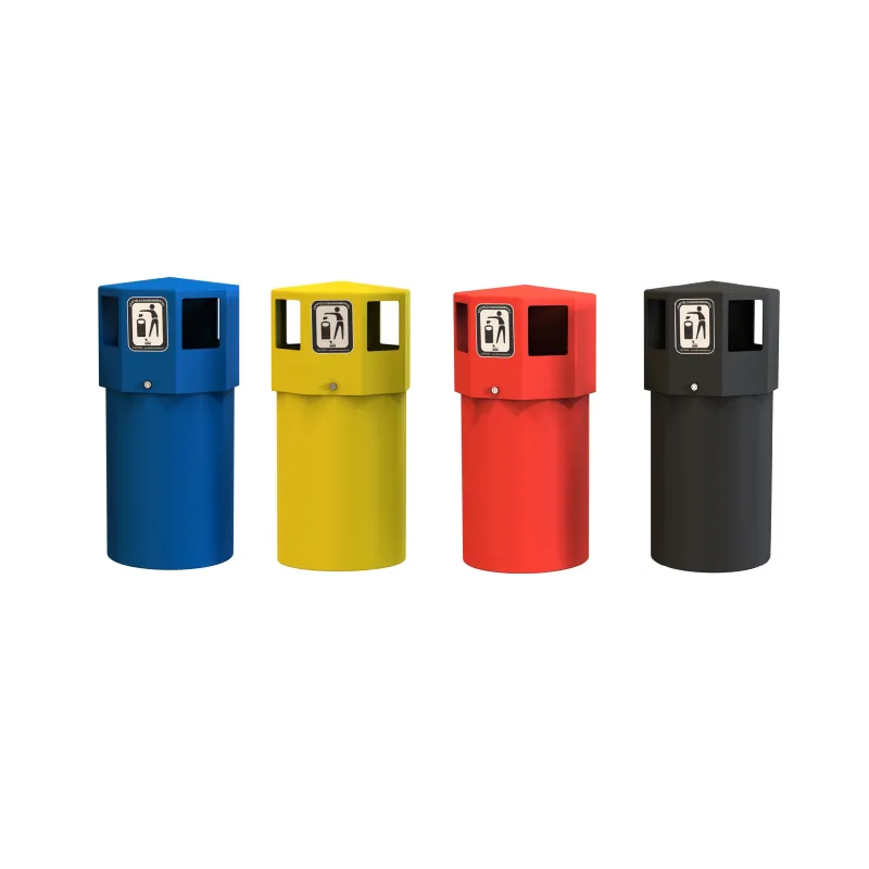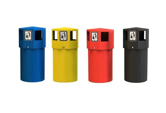 La poubelle extérieure conçue avec de la poudre de polyéthylène teintée dans la masse avec 20 coloris au choix, de haute qualité, anti-UV pour une grande résistance à la corrosion et au vandalisme. Cette corbeille de rue est fonctionnelle, design et moderne et s'adaptera à tous les environnements.