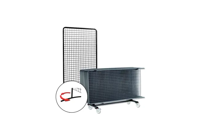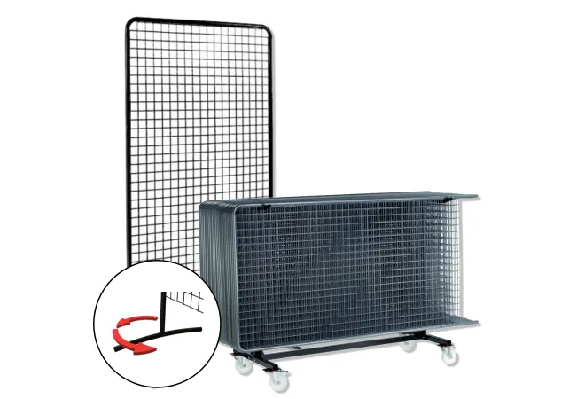 Le lot de 12 grilles d'exposition comprend :12 grilles + 24 pieds + 1 chariot.