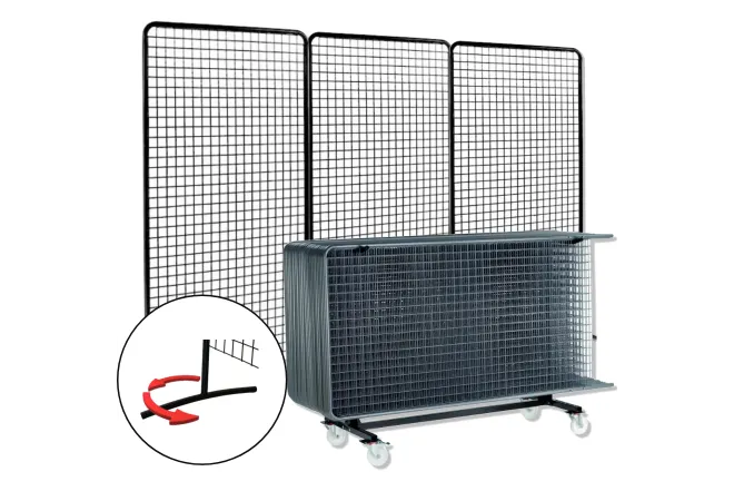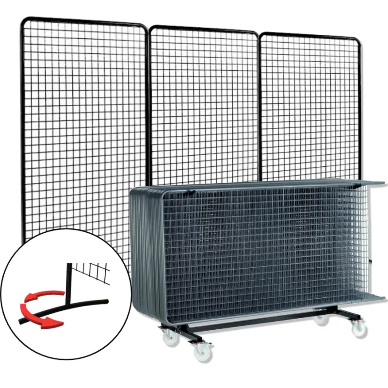 Le lot de 24 grilles d'exposition comprend : 24 grilles + 48 pieds rotatifs + 1 chariot.