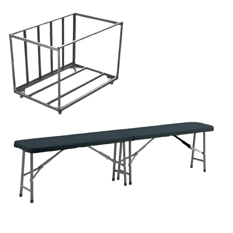 Ce lot de 40 bancs pliants en polypropylène gris Grey Edition® est idéal pour vos événements intérieurs et extérieurs. Faciles à installer, simples à nettoyer et pratiques, les bancs sont accompagnés d'un chariot sur roulettes. Sa capacité permet un gain de place optimal et un transport aisé.