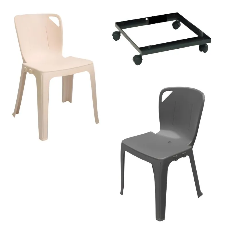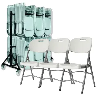 Ce lot comprend 30, 60 ou 120 chaises empilables Elena en polypropylène, certifiées M4, accompagnées de chariots de transport sur roulettes. Idéal pour aménager vos salles de réception, fêtes ou réunions, tout en facilitant le stockage et le déplacement.
