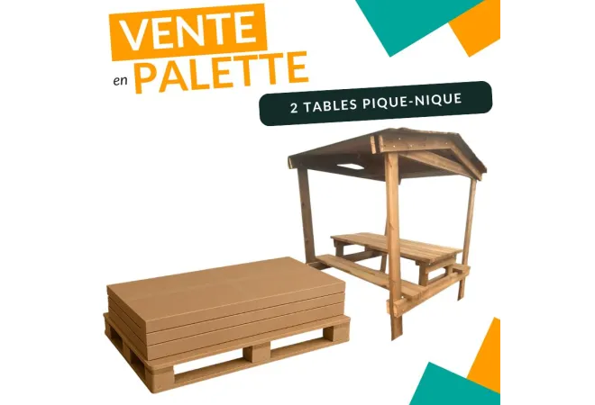 Table de pique nique en bois avec toit – Lot de 2 unités (vente à la palette)