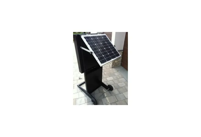 - Panneau solaire rétractable le long du caisson 50 W (pour le bon fonctionnement du radar, il faut au minimum une recharge de 7 heures)