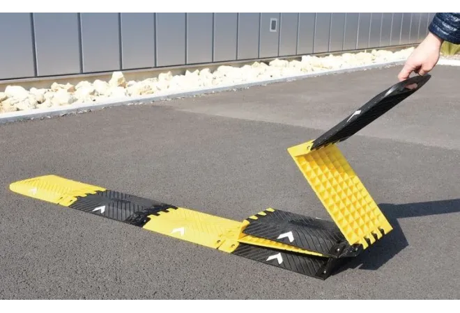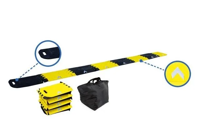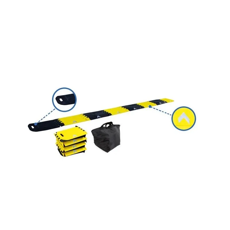 Facilement transportable grâce à son sac de rangement fourni, le ralentisseur nomade polyuréthane de Leader Équipements est la solution pour réduire la vitesse à 25 km/h sur les routes de vos enceintes privées.