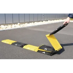 Indispensable au titre de la sécurité de tous, le ralentisseur de vitesse en caoutchouc permet de faire ralentir les véhicules et peut s'utiliser tant sur les parkings que dans les ZI. Simple d'utilisation, déplacez le ralentisseur de voie privée aisément grâce aux fixations par chevilles en nylon. Idéal pour les parkings privés, grandes surfaces et lieux à fort trafic.