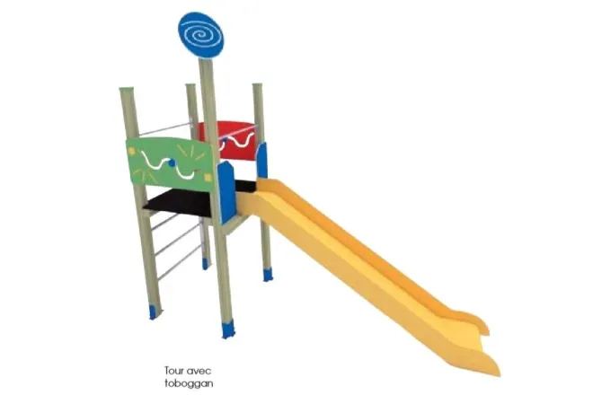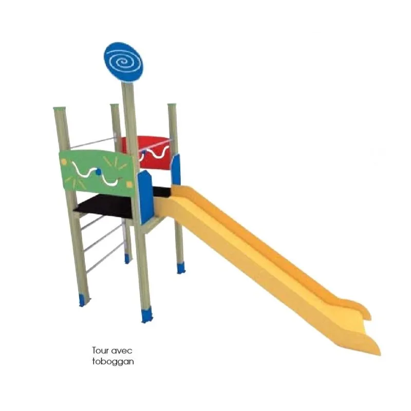 Cumulant barre de pompier, toboggan et échelle, la tour de jeu Mariposa est un jeu multifonction indispensable pour les aires de jeux et les espaces réservés aux enfants. La tour est livrée pré-montée.