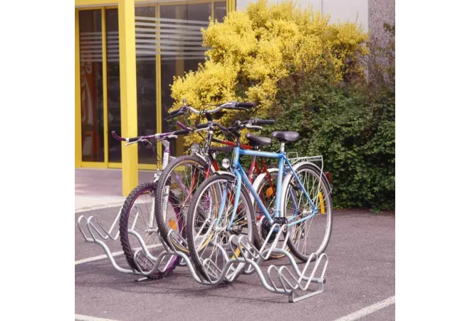 Un râtelier pour 6 vélos sur 2 niveaux. Râtelier qui permet de gagner de la place. De petit encombrement, ce râtelier permet de ranger les vélos côte à côte.