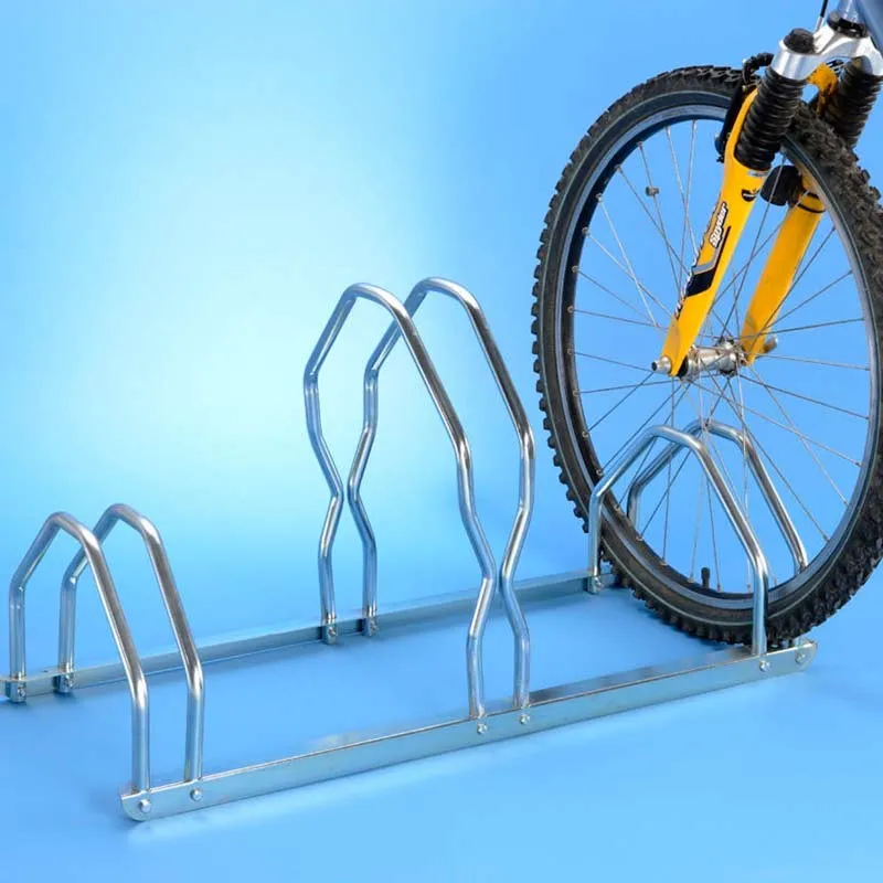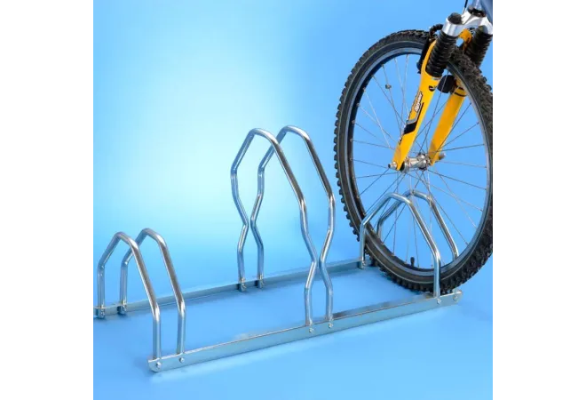 Un râtelier spacieux pour ranger 3 vélos au sol. Ce râtelier accepte tous types de pneus. Il est spacieux et vous pourrez y ranger les vélos sans que les guidons ne se touchent.