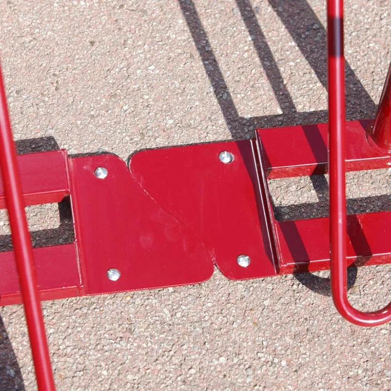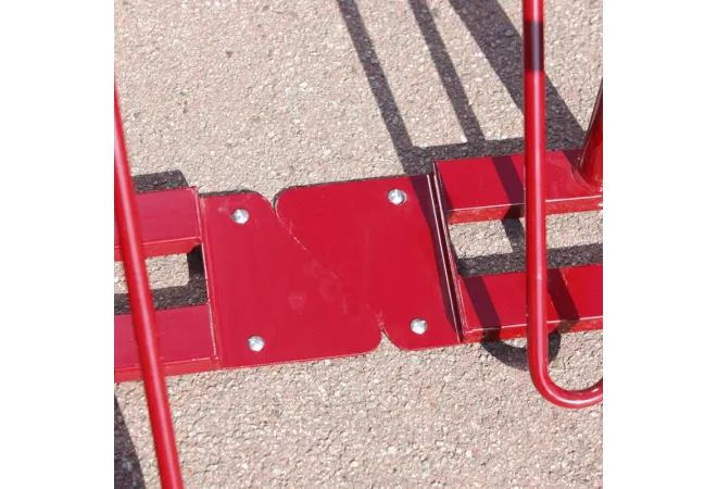 Barrière à vélos avec blocage des roues possible. La barrière à hauteur niveau taille est une barrière à vélo très résistante à fixer au sol sur platines. Les platines sont juxtaposables et peuvent être fixées les unes contre les autres afin de souder tous les modules entre eux et ainsi réaliser une rangée spécialement conçue pour y garer les vélos.