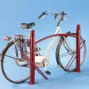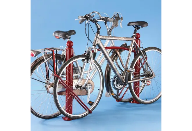 - Un gain de place maximal pour prévoir une disposition en bordure de trottoir et autres zones étroites : Ce rangement de vélo au sol permet d’installer deux vélos tête-bêche sans qu’ils ne se gênent. La roue avant de chaque cycle est glissée dans un emplacement dédié.