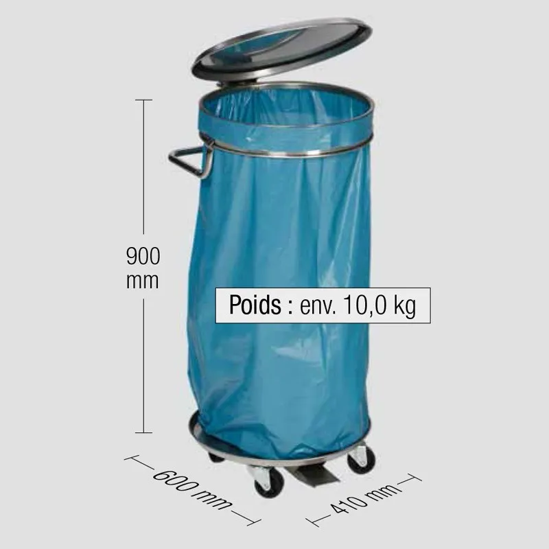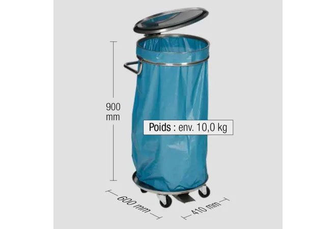 - Chariot en inox pour sac poubelle de 120 L