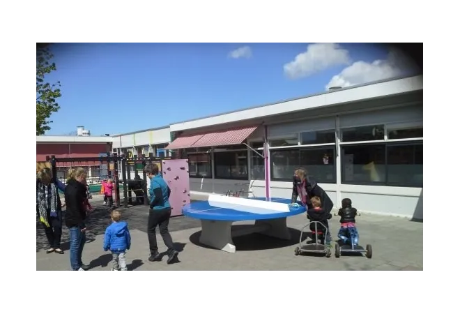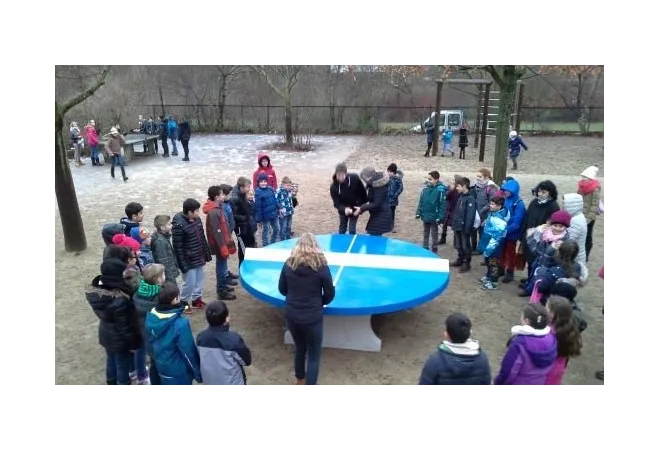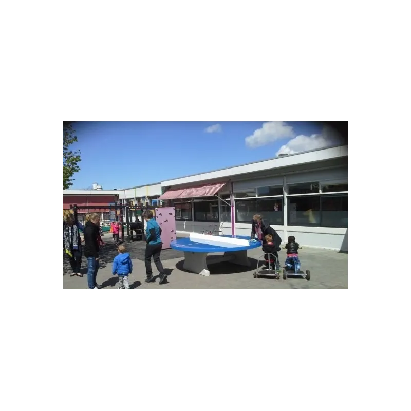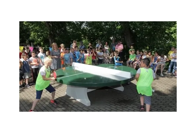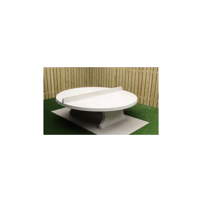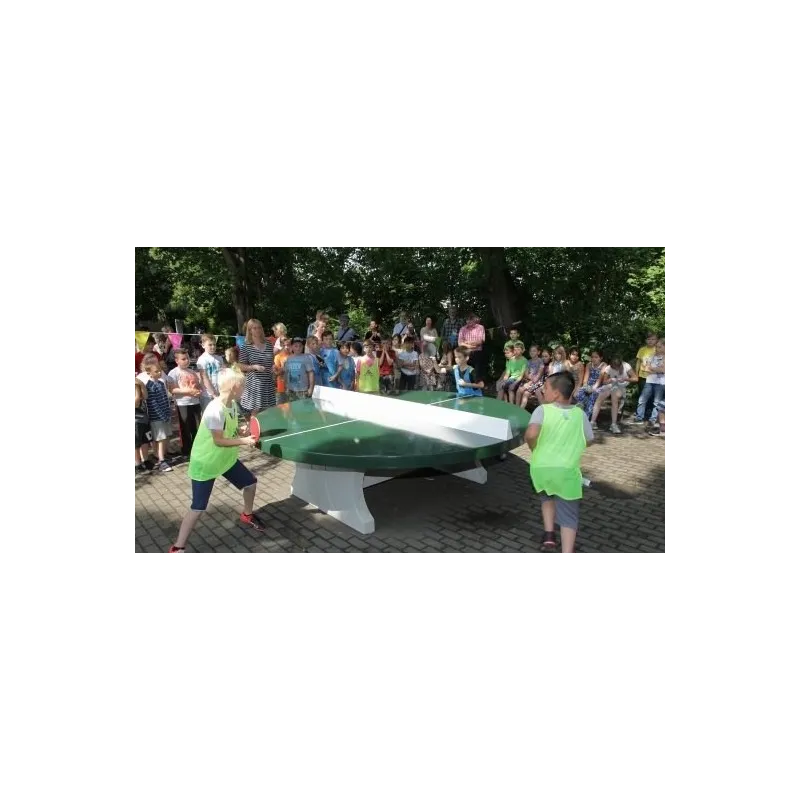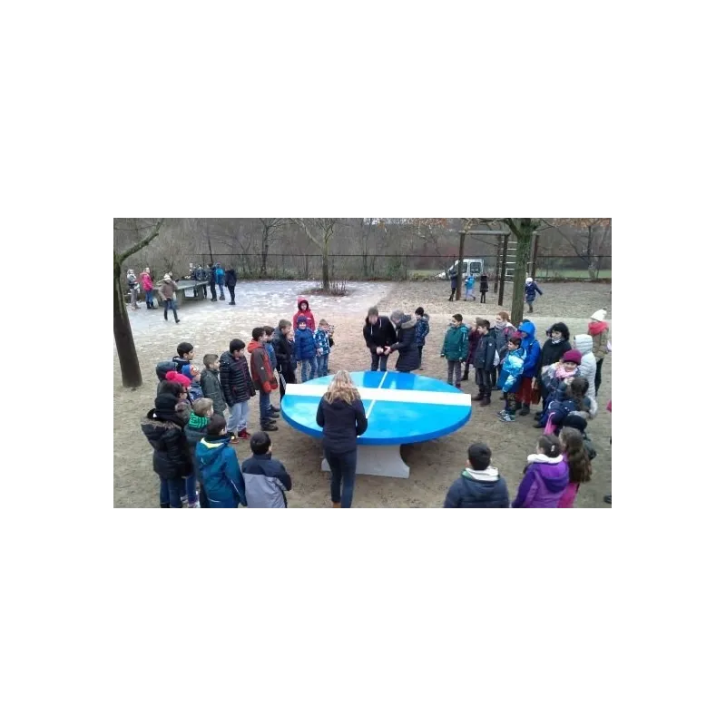 Table de ping-pong ronde en béton permettant d'équiper les écoles, jardins publics, campings... Sa forme peu commune attirera l'attention des petits et des grands ! Cette table ping pong en béton ronde convient à 8 joueurs grâce à son plateau de diamètre 260 cm (plus large qu'une table de ping pong en béton rectangulaire).