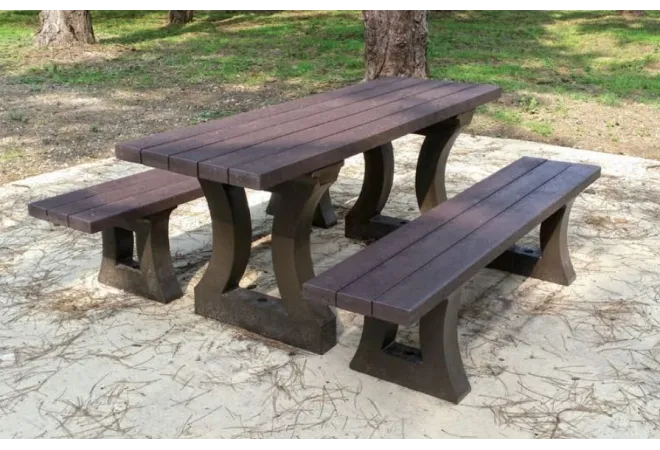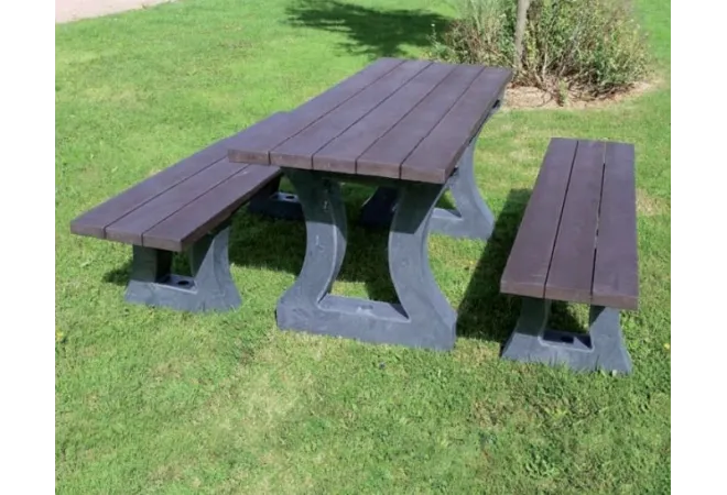 Pour les aires de repos, parkings ou espaces publics, la table de pique-nique California est disponible en de nombreux coloris. Indispensable, elle s'installe très facilement pour permette aux touristes de se restaurer confortablement ou simplement pour leur permettre de faire une pause. Cette table pique nique en plastique recyclé est conforme aux normes en vigueur. 5 coloris au choix.