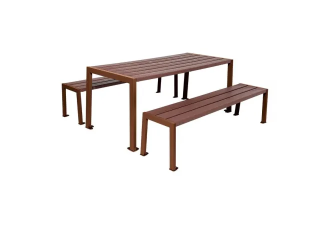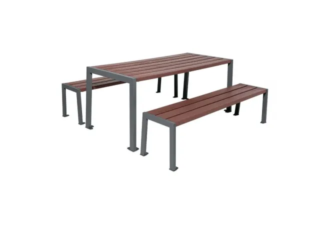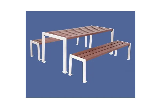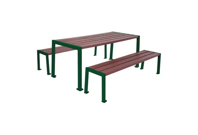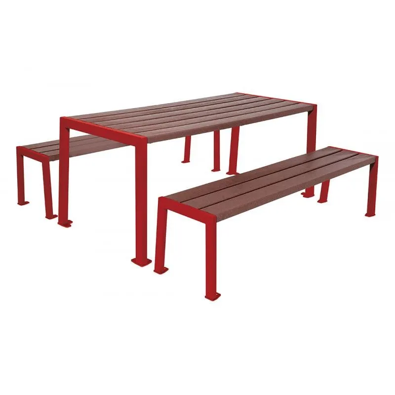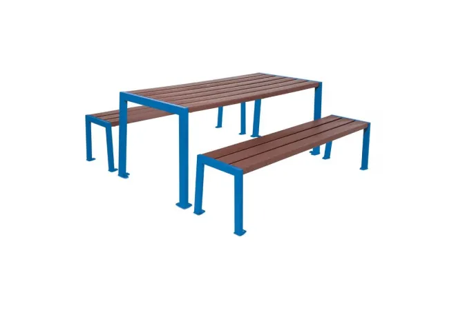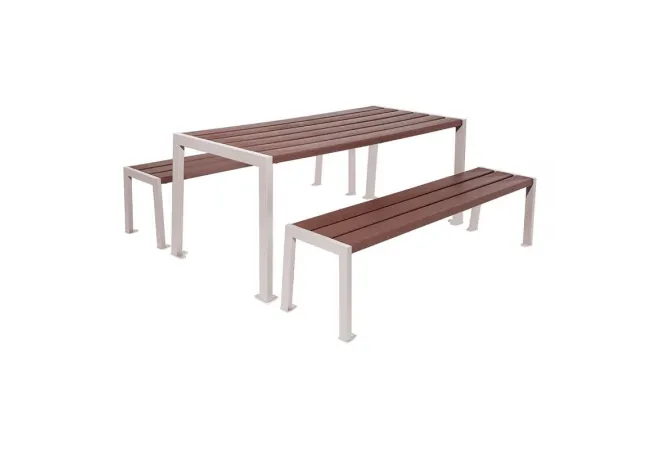 Cet ensemble pique-nique en plastique recyclé est idéal pour équiper les espaces extérieurs.