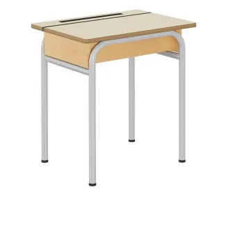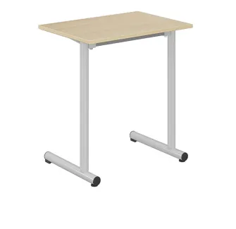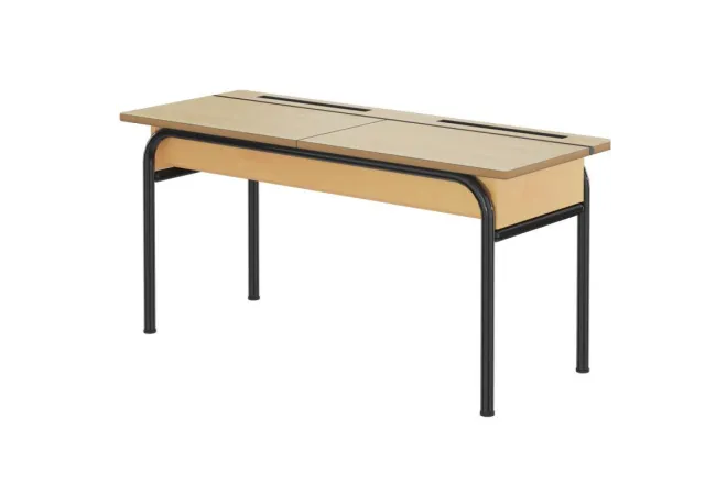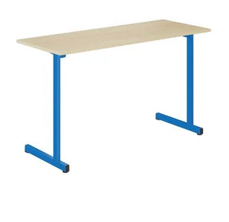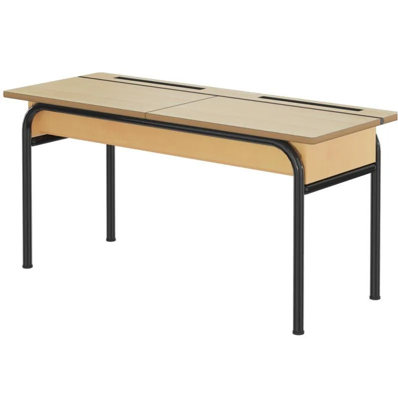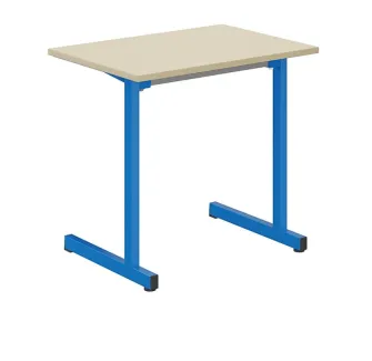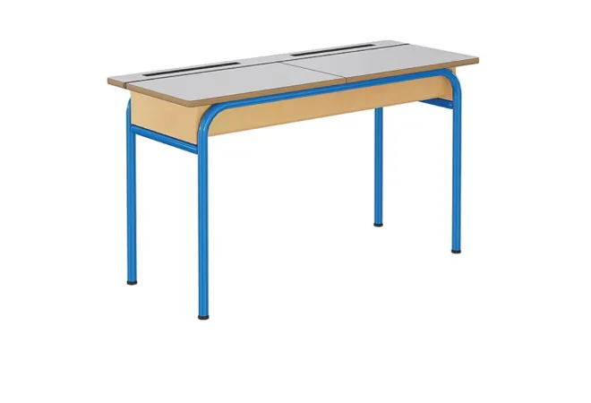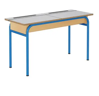 Bureau scolaire biplace 130x50 cm avec plateau MDF stratifié 21 mm, chant verni. Conçu pour accueillir deux élèves, il est disponible en tailles 4, 5 ou 6. Équipé d’un piètement fixe à 4 pieds, coloris selon nuancier. Casier intégré.