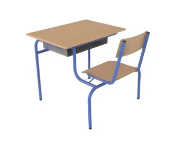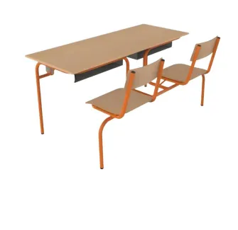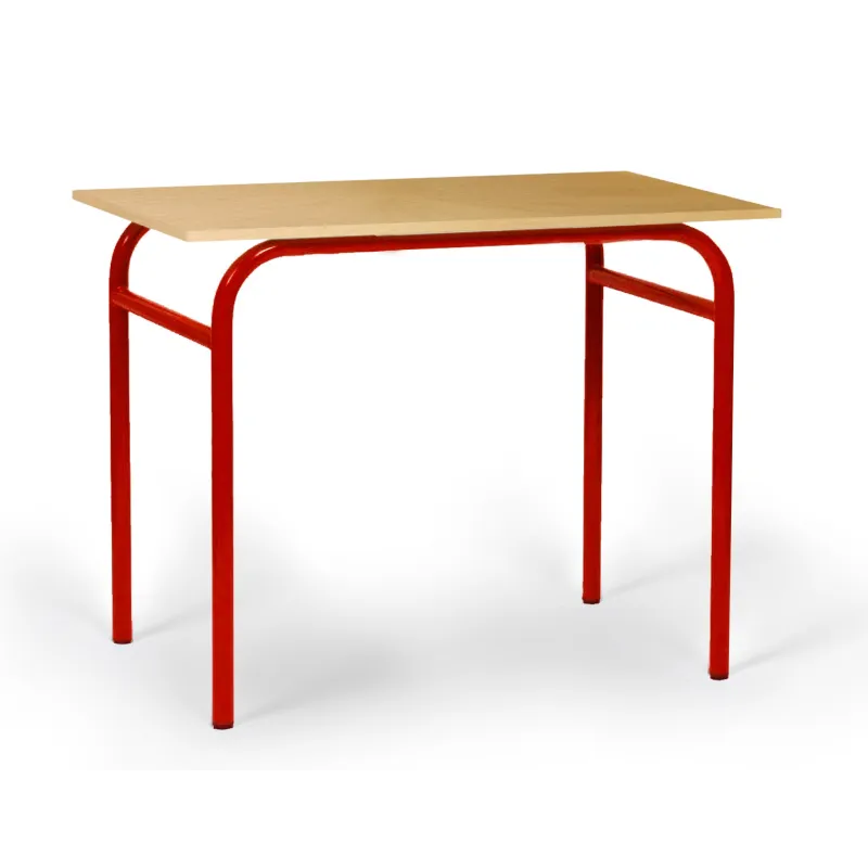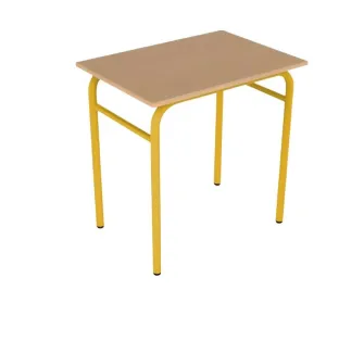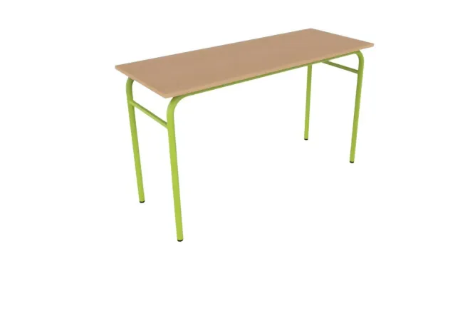 Une structure en acier renforcée par 2 traverses latérales ; Un plateau en bois stratifié ou mélaminé, résistant à l'usure et facile d'entretien ; Des fixations en ailettes qui consolident l'ensemble du bureau d’écolier en bois 2 places et lui apportent stabilité et robustesse.