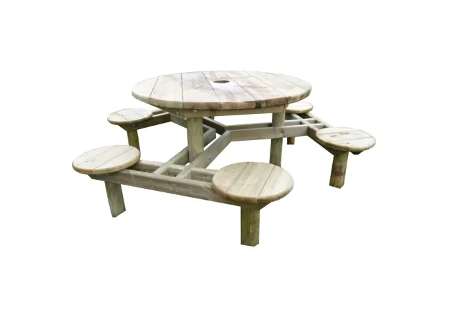 La table de pique-nique ronde en bois Forest : 100 % fiable et résistante