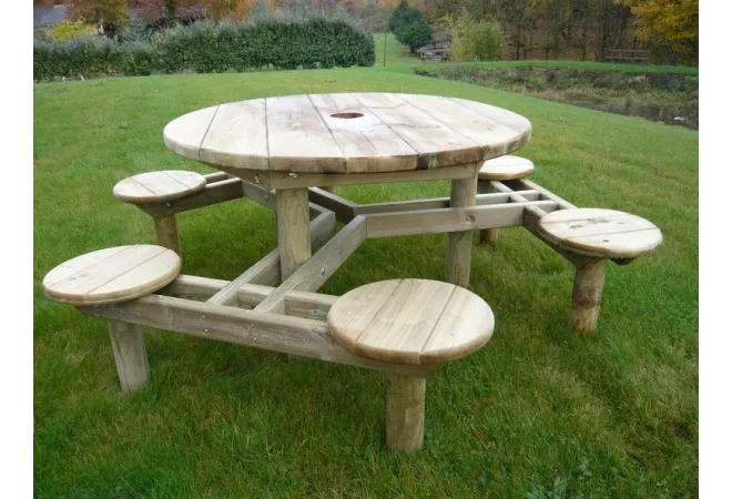 Offrez une table de pique-nique ronde en bois aux enfants de votre collectivité