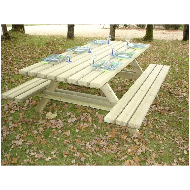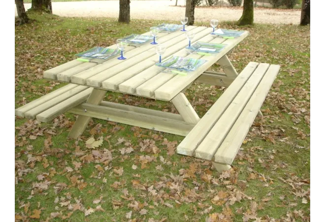 - Le traitement opéré prolonge la durée de vie de la table de pique nique de camping, même en cas d'usage intensif.
