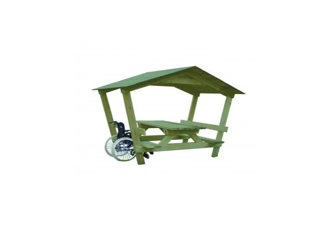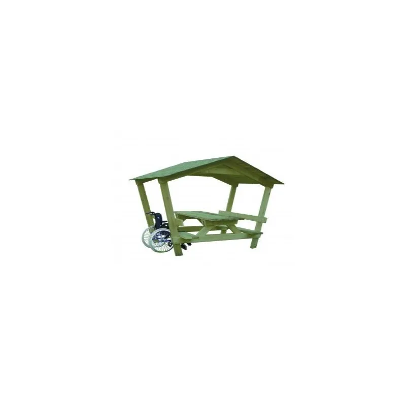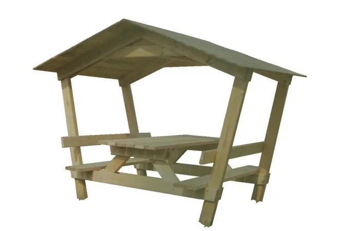 - Toutes les parties (toit, table et bancs) réalisés avec barre d'adossement solidaire