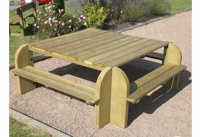 Pour l'équipement des jardins publics, des parcs et des espaces collectifs, la table de pique nique en bois traité autoclave BRIVE est idéale. Le plateau de table et les bancs sont livrés pré-montés, et prêts à poser ou à sceller.