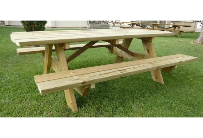 - Table de pique-nique en bois pin du nord rouge traité autoclave classe 4, sans chrome ni arsenic