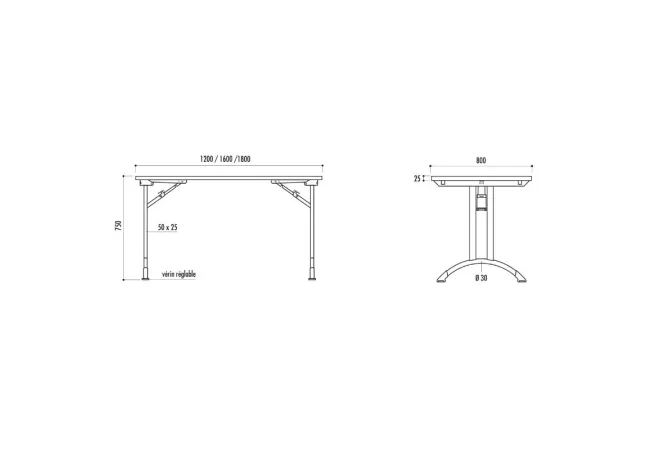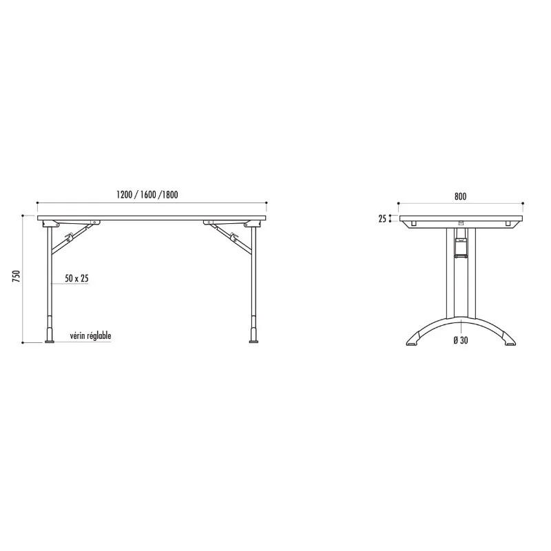 Caractéristiques de la table de collectivité pliante