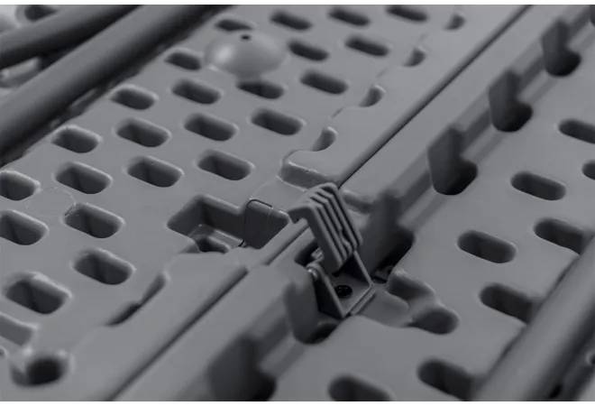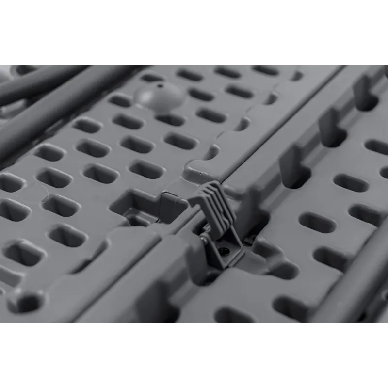 - Plateau monobloc en polyéthylène haute densité, traité anti-UV, résistant à l'eau