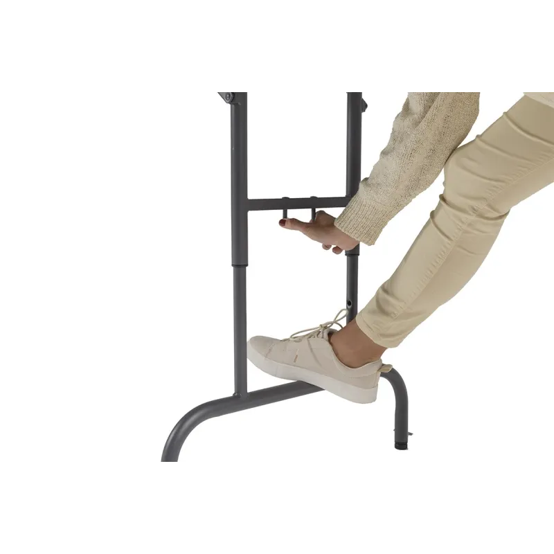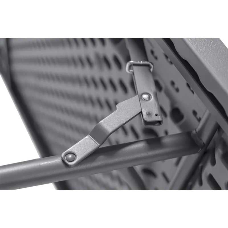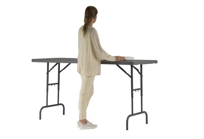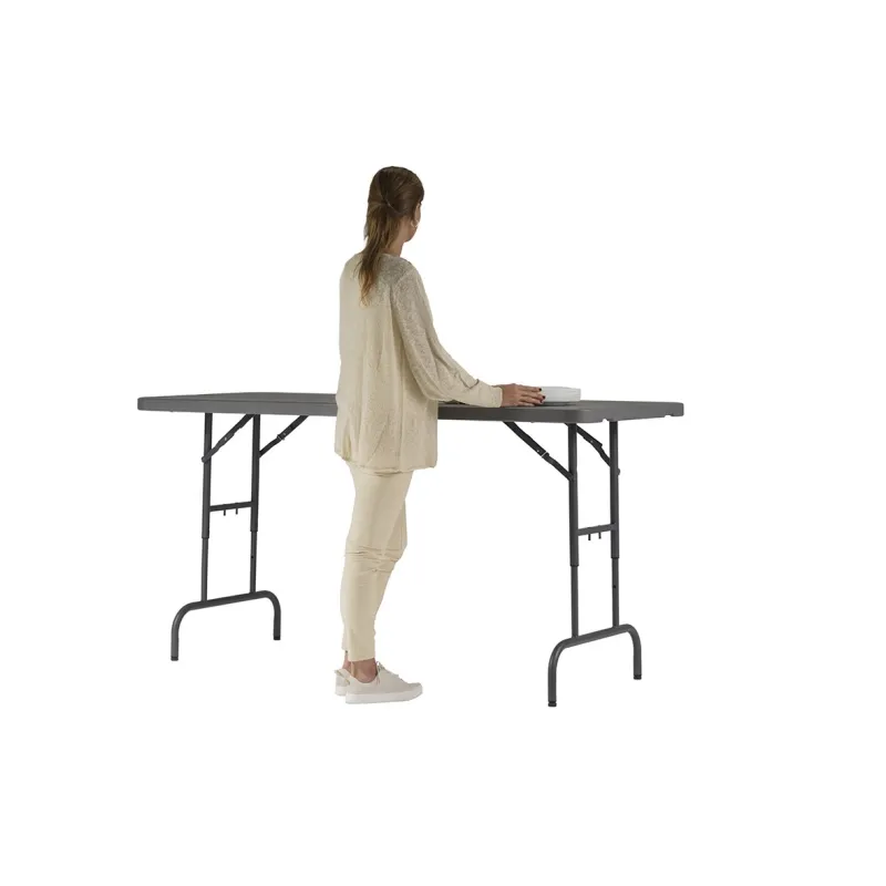 Cette table de travail pliante est réglable en hauteur pour faciliter toutes les activités nécessitant d'être en position debout. Fabriqué avec un plateau en plastique monobloc et des pieds en acier, ce modèle est très solide. Les pieds peuvent également être réglés de niveau pour une meilleure stabilité. Notre table pliante réglable en hauteur est traitée anti-UV, résistante à l'eau.