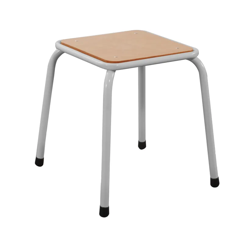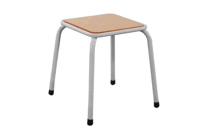 Le tabouret pour salle de classe, hauteur 45 cm. Hêtre vernis incolore et piètement époxy gris alu. Tabouret scolaire empilable par 4.