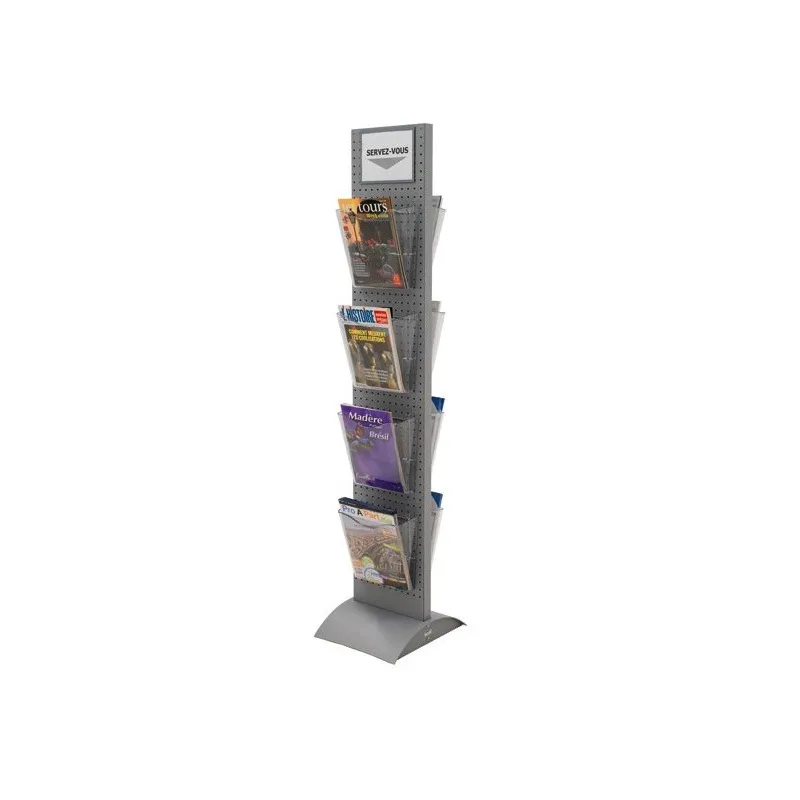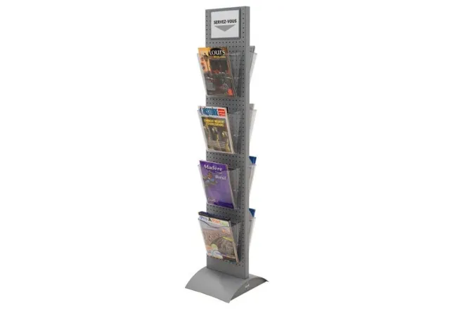 Présentoir à brochures avec 8 porte-visuels en plexi.