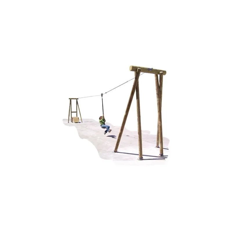 Idéal pour les aires de jeux, laissez les enfants jouer aux aventuriers et s'amuser avec la vitesse trépidante donnée par la longueur du câble de 20 mètres et le dénivelé de 0.5 mètre de cette structure tyrolienne extérieure en bois de qualité professionnelle et répondant à la norme NF EN 1176.