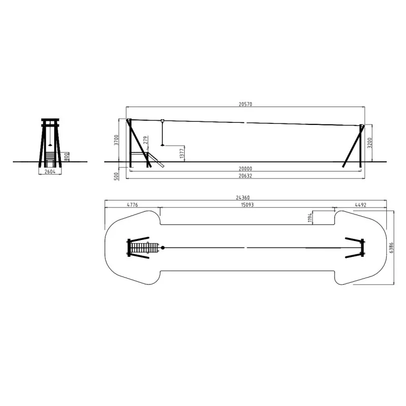 Avec la tyrolienne structure en bois Longueur 20 mètres et dénivelé de 0.5 mètre, les enfants pourront non seulement s'amuser pendant des heures mais aussi développer leur sens de l'équilibre. C'est un succès garanti auprès des jeunes dans tous les parcs publics avec cet équipement pour aire de jeux extérieur. Il est fait de pin traité résistant.