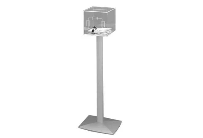 L'urne de vote transparente avec trappe sur pied s'ouvre par une trappe latérale verrouillable par 2 clés, offrant ainsi une protection fiable au secret du vote. Facile à manipuler l'urne est sur pied en aluminium avec base lestée de 4 Kg, elle peut contenir de 400 bulletins, idéale pour des petites élections, vote ou concours.