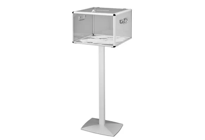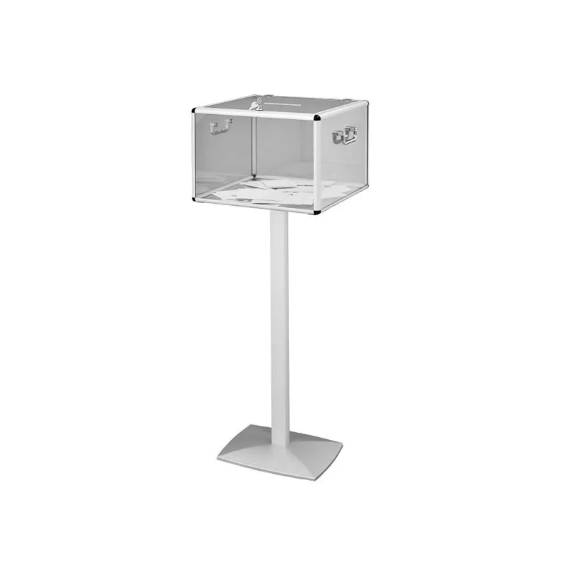 L'urne pour vote électoral transparente avec serrure sur pied lesté offre une protection fiable au secret du vote. Facile à manipuler et stocker, elle peut contenir jusqu'à 1300 bulletins, idéale pour des élections publiques ou associatives, etc.