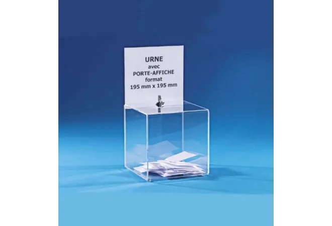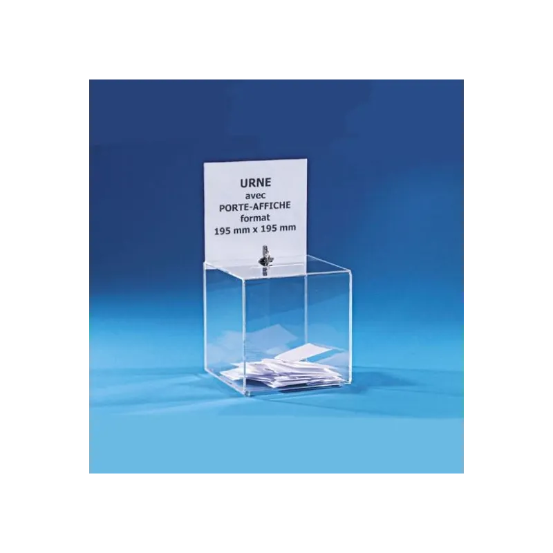 - Urnes transparentes de moyenne taille 20 x 20 x 20 cm avec porte-affiche 19.5 x 19.5 cm - 400 Bulletins