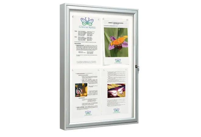 Ce tableau d’affichage vitrine peut être personnalisé au maximum. D’un point de vue dimensions, vous pourrez choisir la taille de votre vitrine d’extérieur. Ainsi, elle pourra correspondre entièrement à votre projet d’affichage et d’information. Pour connaître la dimension de votre vitrine d’affichage d’extérieur, nous vous recommandons de reprendre votre projet : que voulez-vous afficher ? En fonction de votre réponse, vous saurez quelle taille de vitrine classique est faite pour votre collectivité, association, entreprise. Vous n’arrivez pas à vous projeter ? Aucun souci, comparez les différentes tailles de tableau d’affichage vitrine à une feuille de papier. Avec une page A4 vous vous rendrez vite compte de la taille de la vitrine extérieure. Cette vitrine d’affichage extérieur est de haute qualité. Elle ne s’abîmera pas, ni avec la pluie ni avec le soleil. Elle continuera d’informer les visiteurs et usagers durant longtemps.