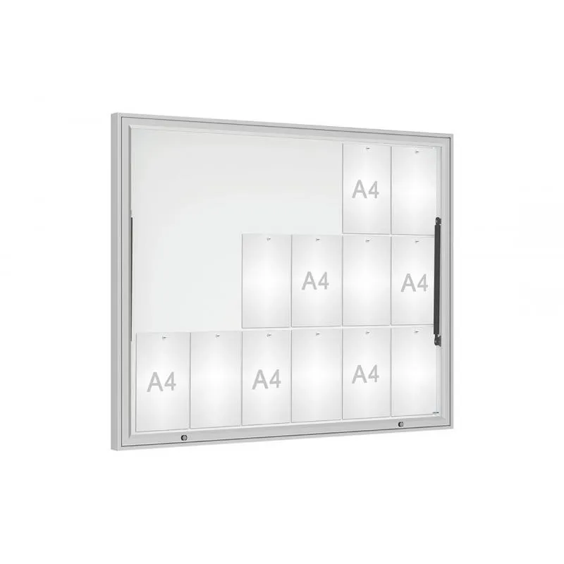 La vitrine extérieure Classique vous permettra l'affichage de vos documents à l'extérieur des bâtiments. Le panneau vitré extérieur est en aluminium anodisé argent, sa taille d'affichage de 18 à 21 feuilles A4, ouverture avec une porte levante qui vous facilitera l'insertion des informations que vous souhaitez afficher.