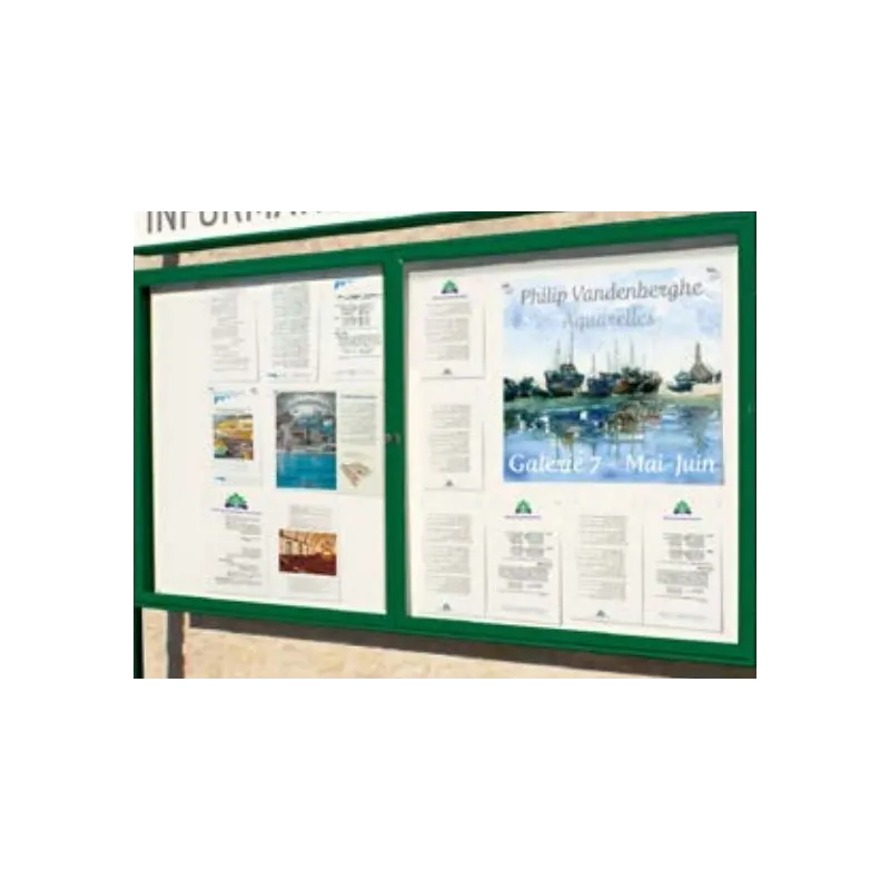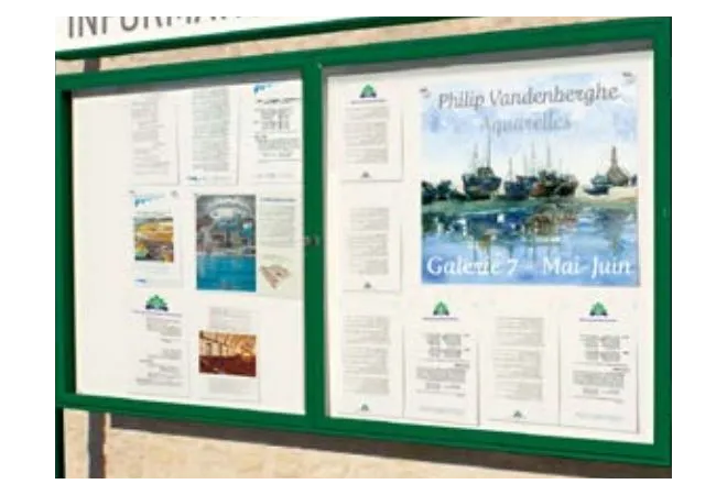 La vitrine d'extérieur 1000 est simple d'utilisation et peu encombrante. Ses portes double battants vous facilitera la mise en place de vos documents. Totalement étanche pour un usage extérieur. Cinq coloris au choix. Accrocher une vitrine murale à l'extérieur de l'enceinte de votre bâtiment est le meilleur moyen pour informer et pour communiquer.